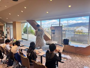薬剤師の役割や調剤の流れをわかりやすく紹介し、キズリバテープを使った簡単な体験を実施しました。