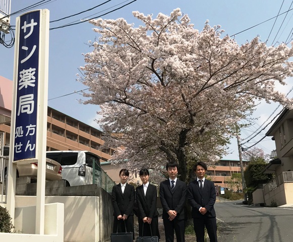 2018年4月6日 2018年度 入社式 2018年4月1日 満開の桜の中、4名の社員が入社し、本社にて入社式を執り行いました 早速 ビジネスマナー、ユヤマ製作所様での外部研修など、 新人研修をスタートしています。 県内60店舗のネットワークと地域をつなぐサン薬局で、地域・社会に貢献できる薬剤師として活躍して頂きたいと思います。