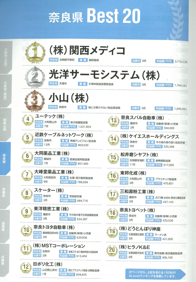 2020年度版 東京商工リサーチが厳選した「優良企業」完全ガイド の奈良県TOP1に当社が掲載されました。
