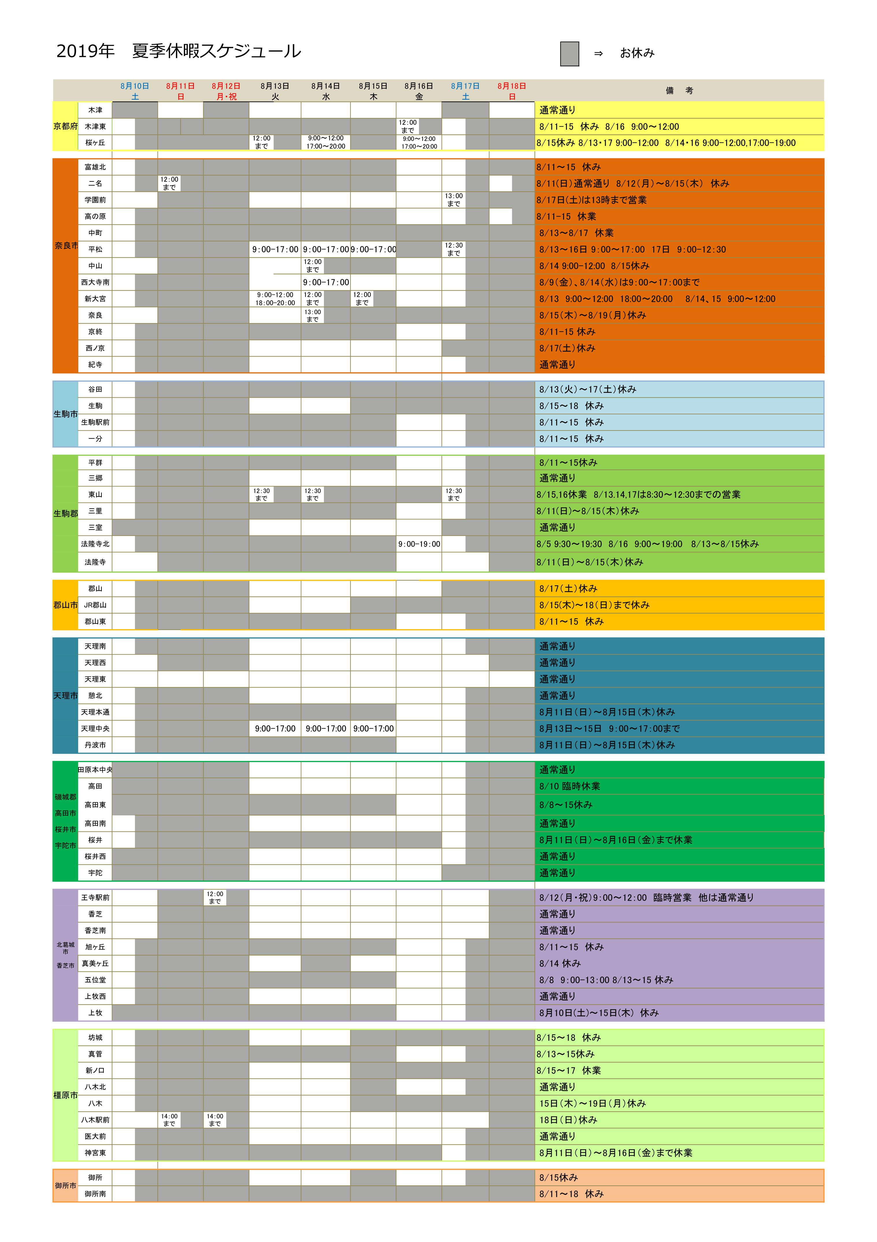 夏期営業スケジュールのご案内